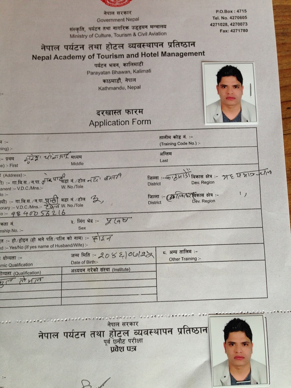 本人は小学校を途中でリタイアしているのでネパール語の読み書きも怪しく、申込書の記入をするときには担当者に「カトマンズってどう書くんでしょう?」と尋ねるしまつ。「果たして話が理解できるのだろうか、」と不安を抱きつつ会場に着くと渡された資料はネパール語どころか英語で、そのうえ参加者の多くはマネージャークラスでばりっとしている。あんちゃん風のコックとどこから来たのか外人の私たちはどう見てもその場に似合わない。