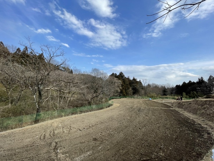まず、車の通れる道を作り、荒れ果てた土地から竹を切り、土地を平たくした後、耕運機で土壌改良剤・肥料の散布をさせて頂きました。