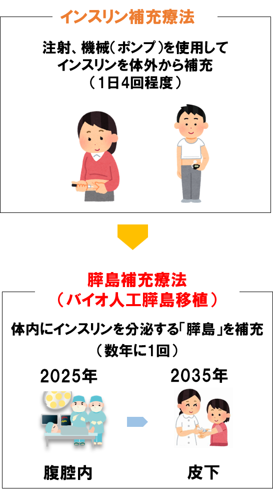 さらにその先にはインスリン欠乏型の2型糖尿病患者さんへの治療も見据えています。