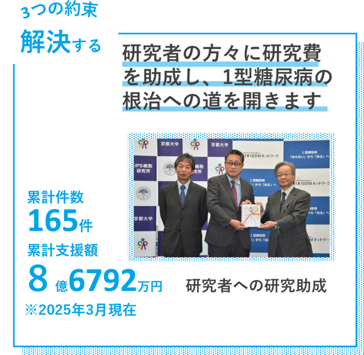 - 解決する:1型糖尿病根絶につながる研究を行う日本の研究者への研究費助成