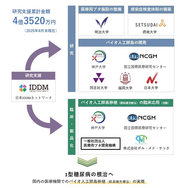 私たち日本IDDMネットワークは、不治の病『1型糖尿病』の根治に向け、「バイオ人工膵島移植(膵島補充療法)」を日本で実現するために研究支援を行っています。