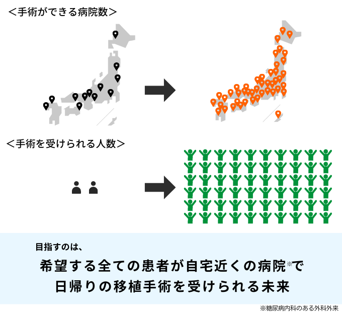 私たちが目指すこと:希望する1型糖尿病患者が日帰りで受けられる膵島移植手術