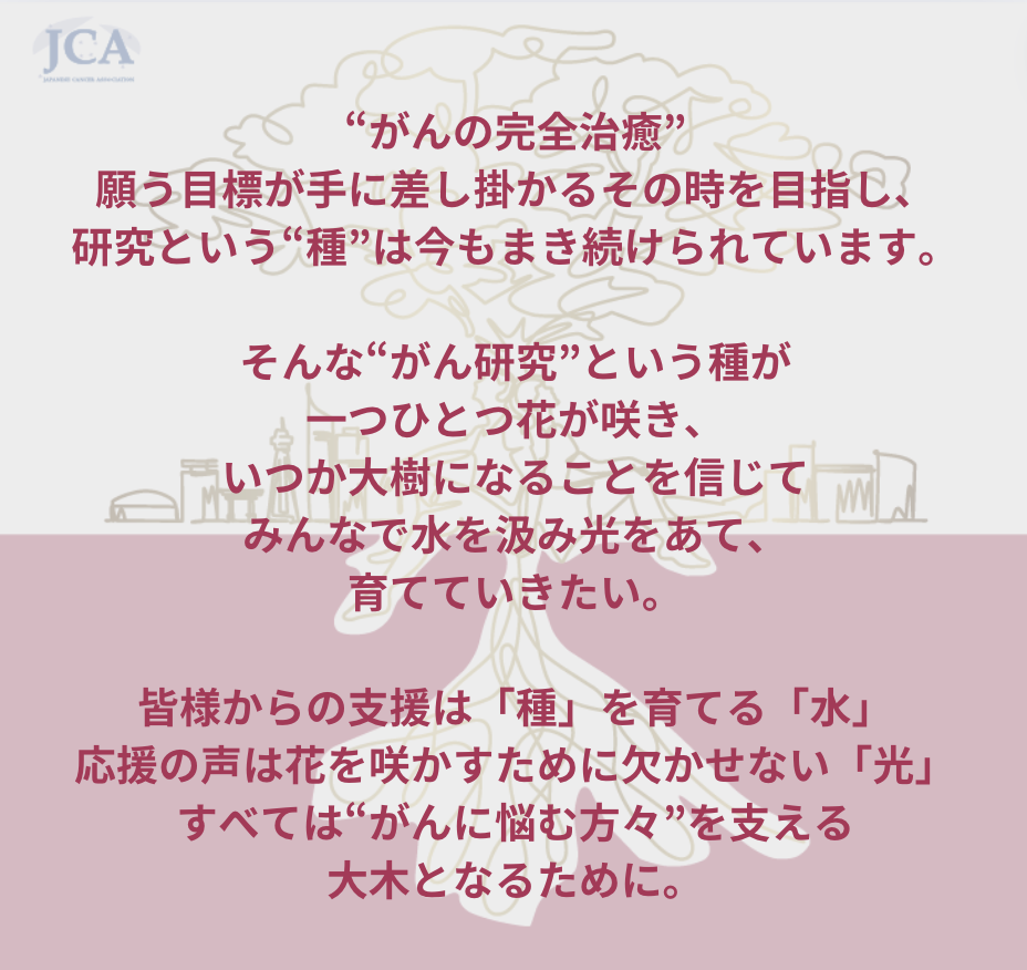 同時に、将来にわたって若手研究者を育成し、がん治療の種を育て、花を咲かせるために、このような支援を継続してほしい、との意見も非常に多く寄せられました。