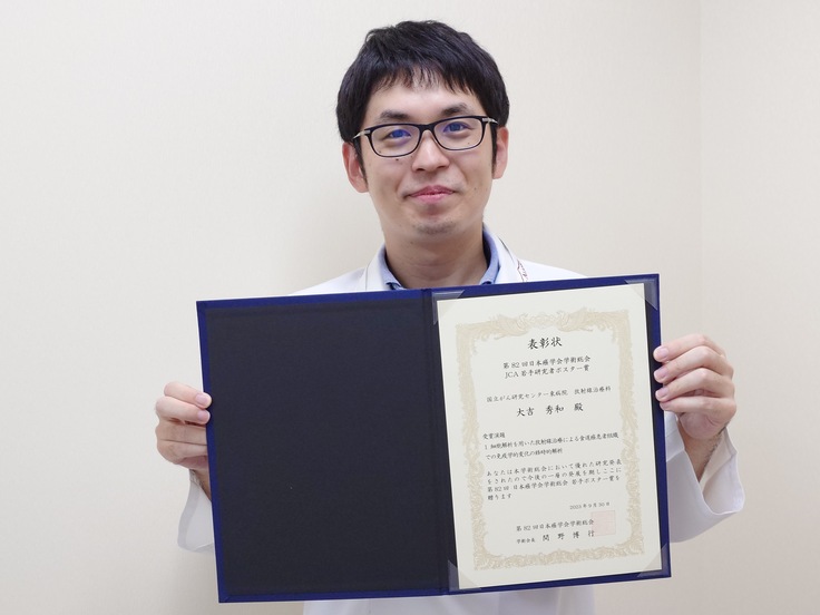第82回日本癌学会学術総会にてJCA若手研究者ポスター賞をいただき、誠にありがとうございました。私個人でも医師として初めての受賞であり、非常に嬉しく思います。副賞も早速がん研究のために有意義に使用しております。