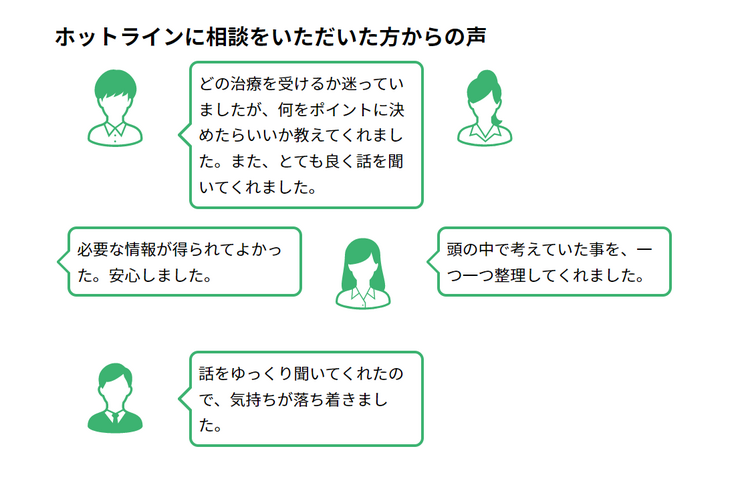 がん相談ホットラインには、がんに関する不安や心配があることならどなたでも利用できる