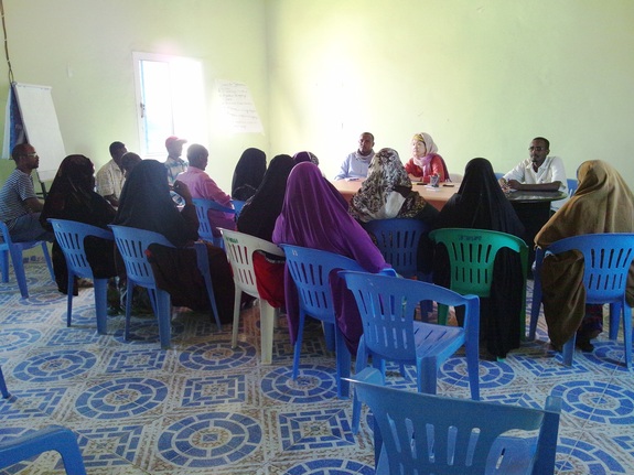 (ソマリア北東部プントランドのガロウェ市で協議する様子)