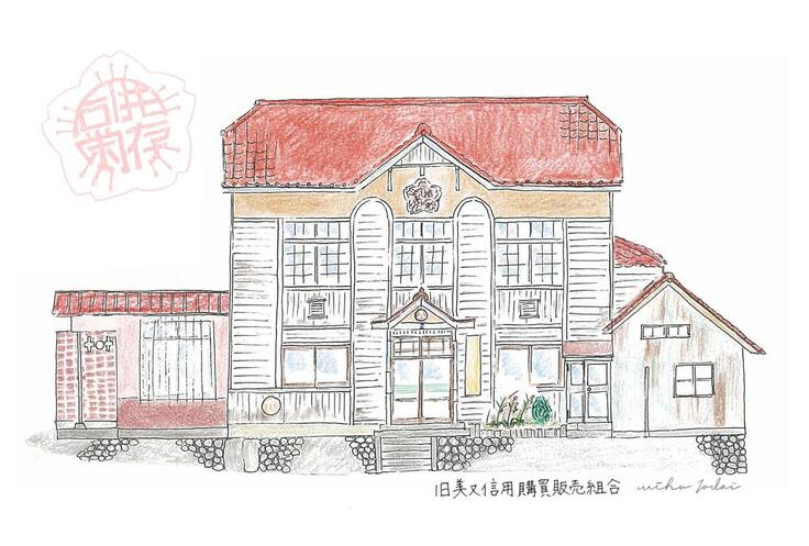 リターンの絵葉書は2枚です。1枚目は人々が助け合いながら繁栄していこうという理念を表した「共存同栄」マークと、旧農協の建物正面を描いたものです。建物正面は、リターンのひとつ「エコバック」のデザインとしても予定しています。