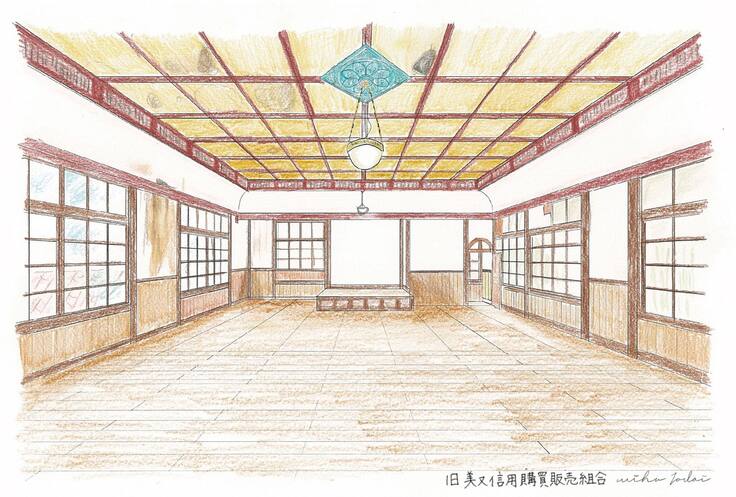 もう1枚は、築86年の当時を感じることができる素敵な内装が特徴の二階を描いたものです。どちらもあたたかく優しい印象で、上代さんの美又地区への愛が伝わってくる絵葉書となっています。