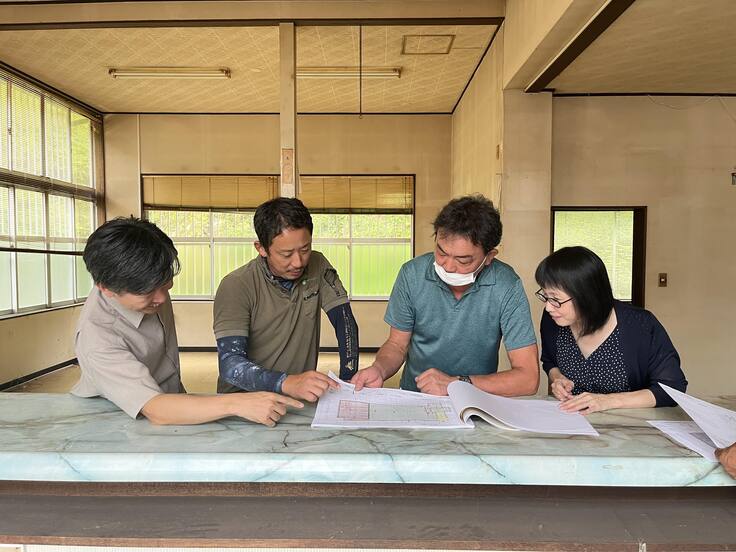 現地での直接の打ち合わせは2回目でしたが、すっかり打ち解け、この素敵な建物の雰囲気を生かした修繕と改修になるよう、一緒に取り組んでいこうと目線を合わせる良い機会になりました!