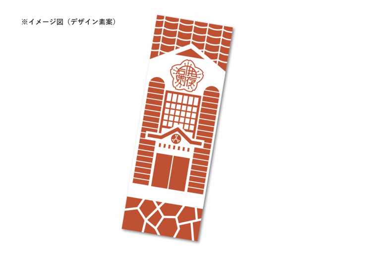 まずオリジナルの限定手ぬぐいです。手ぬぐいは「共存同栄」と建物ををモチーフにして、『おもしろい地域にはおもしろいデザイナーがいる』(学芸出版社)に登場する島根在住のローカルデザイナー安田陽子さんがデザインしました。