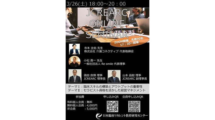 3/26(土)にはセラピストの経営マネジメントについてのセミナーを開催し、治療だけでなくいろいろな教育を企画しています。