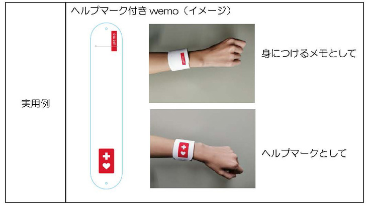 私たち発達障害者は、忘れ物が多かったり、やることリストを見える化しないと、パニックになったり、散らかったりします。そのため常にメモが必要になります。そんな時、看護師さんたちが使用しているメモ機能付きリストバンド(wemo)が存在することを知りました。 これに、障害者のためのマーク『ヘルプマーク』をつけたら、多くの障害者に役立つのではないかと思いました。