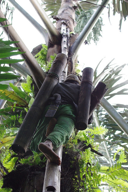 サトウヤシの木から採れる樹液(正確には花序液)を集めに向かうのです。