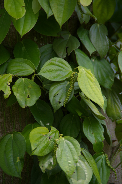 森の木に巻き付いて成長するツル性のジャワコショウ