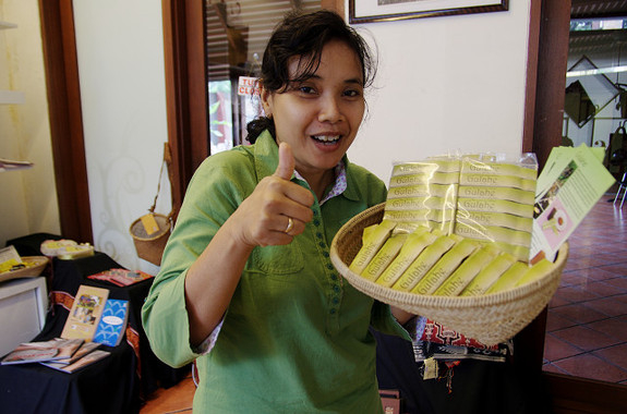 ジャカルタ市内の高級デパートのお土産コーナーにこうして並べられていても、違和感ないですよね!?