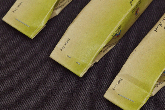 残念ながら、ホチキス止めされた商品は包装を廃棄して、再パッケージングの作業に入らねばならなくなりました。