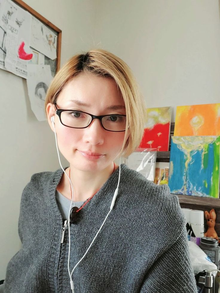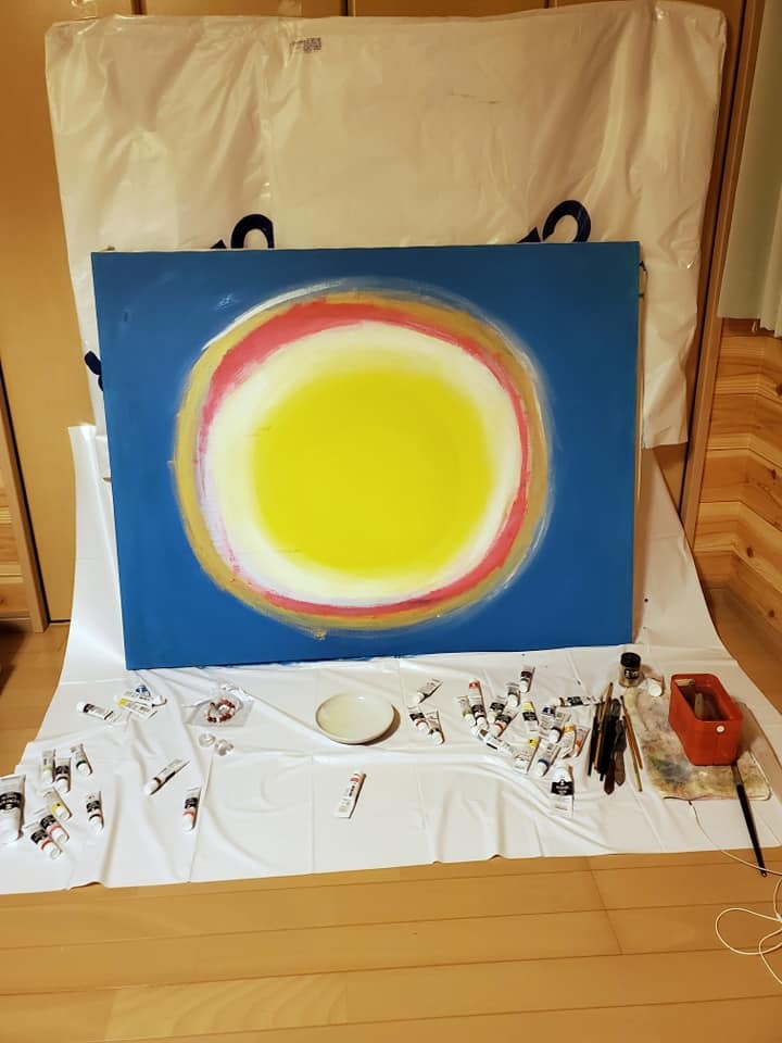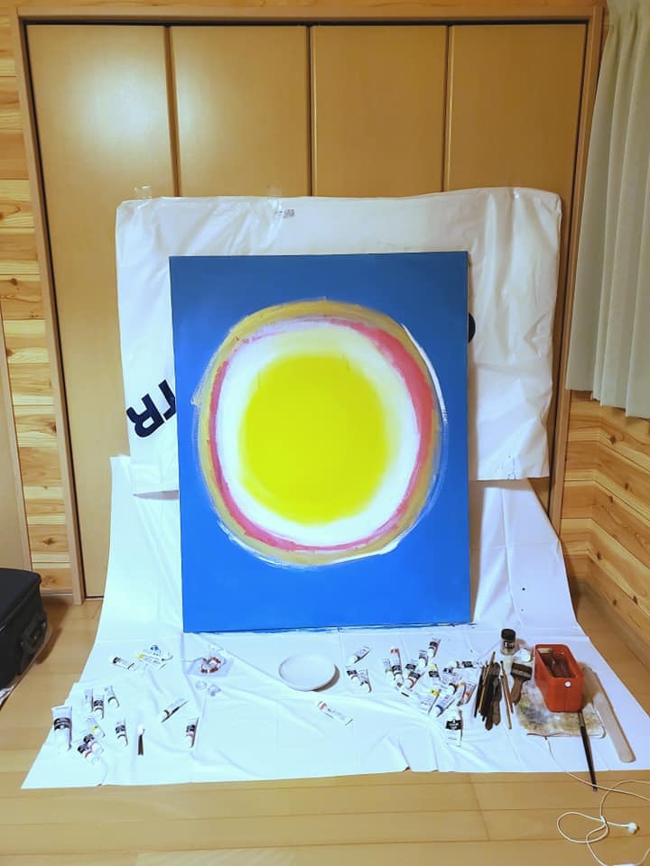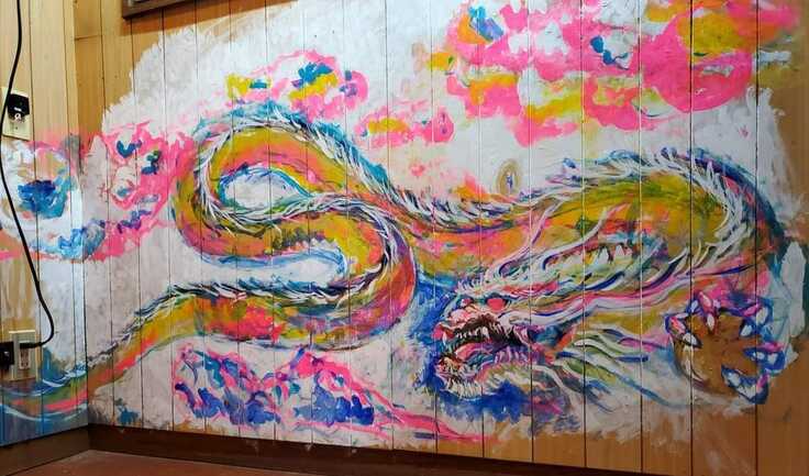 学生時代に絵の基礎を学ぶも活かすことはなく結婚出産。生き方を変え自分を満たしていく過程で絵を描きたくなり、大きく絵描きたいと思うようになる。実家で壁を眺めてると描きたくなった『龍』。今は小さなサイズの方が描けません(笑)