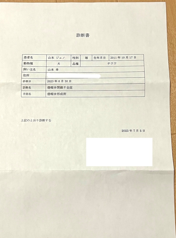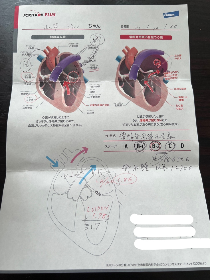 2021年12月末の検診の際、心臓に雑音があると指摘され検査の結果『僧帽弁閉鎖不全症』と診断されました。