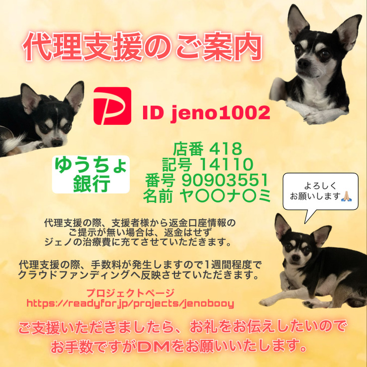 ご支援はすべてジェノの手術費とさせて頂きます。