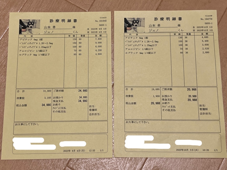 先月の明細書(左)もまだ載せていませんでしたので、添付いたします。