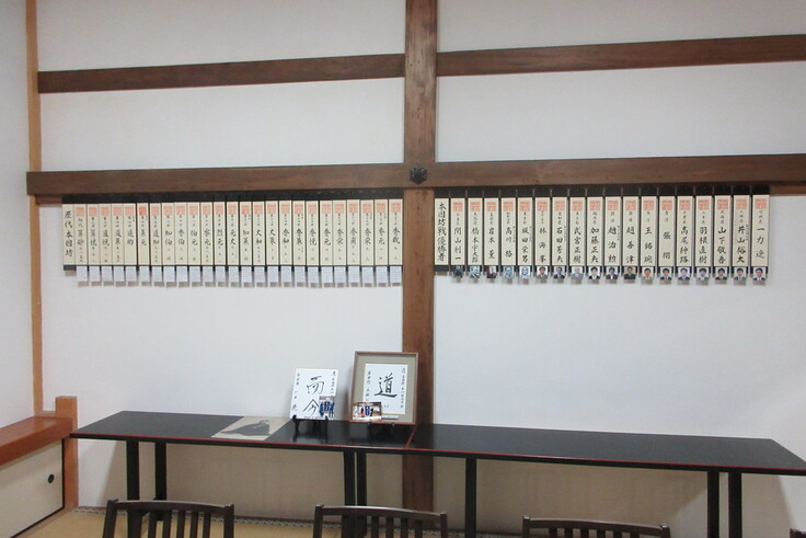 そして本堂「橘の間」にも初代算砂上人から一力遼本因坊までの、本因坊のタイトルを継がれた全棋士の木札が掛けられています。
