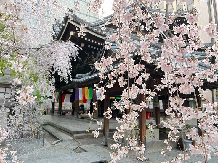 続いて訪れる六角堂は、聖徳太子が創建したと伝わるお寺で、「いけばな発祥の地」として知られています。代々花を供えてきた僧侶が池のほとりに住んでいたことから「池坊(いけのぼう)」が生まれ、今日のいけばなへと発展しました。