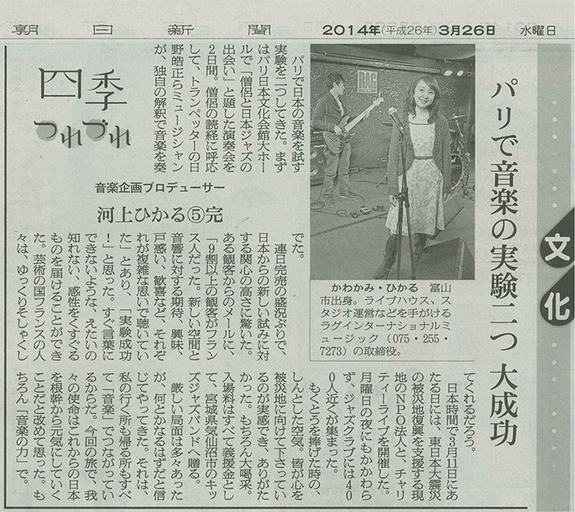 *パリ「慈愛LOVE」公演及び東日本大震災復興支援チャリティライブの報告レター