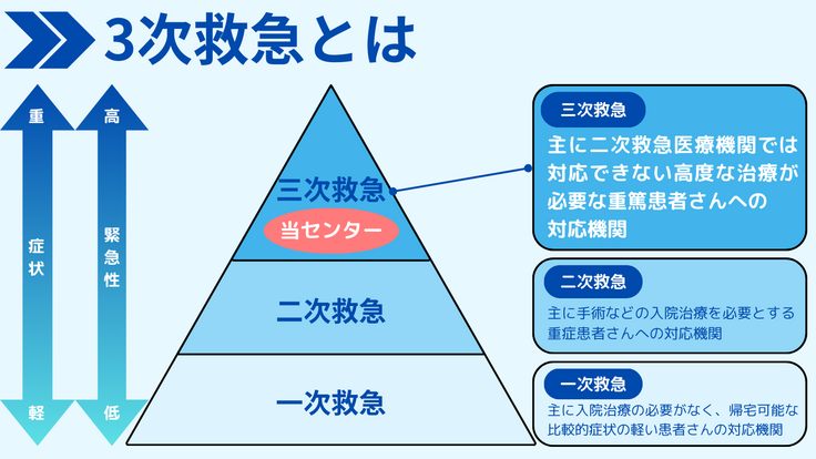 救急・地域・災害医療に柔軟に対応し、もしもの時に命を救う“ 地域のSafty net ”として機能する、極めて重要な医療資源です。私たちは地域の他医療機関と連携し、持続可能な救急体制の構築に力を注いでおります。その実現のためには、皆さまの温かいご支援が不可欠です。医師・看護師を始めとする医療スタッフ全員が一丸となり、一人でも多くの命を救いたい。