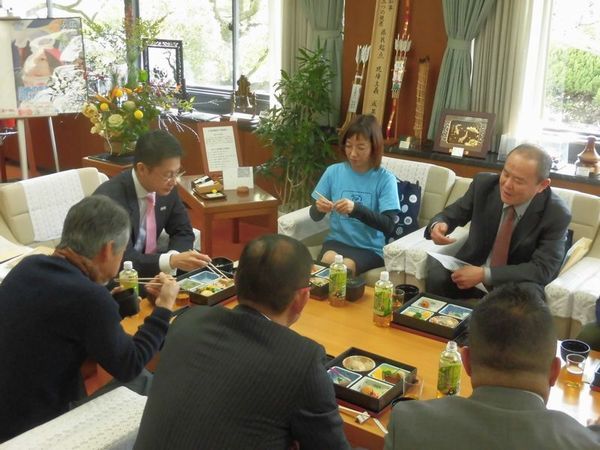 今日は広島県庁にお伺いし、知事室で「湯崎知事とランチ懇談会」でした。