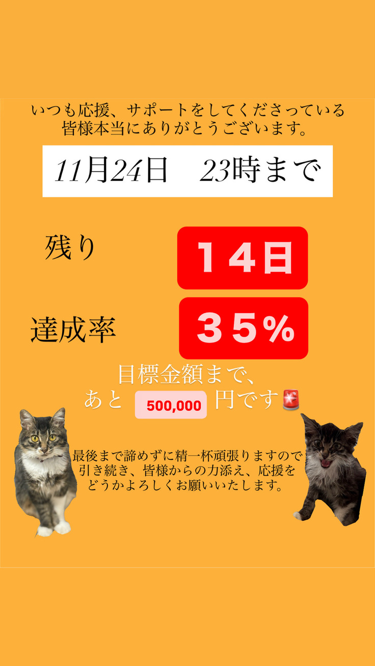 11月10日、投薬48日目‼️クラウドファンディング残り14日