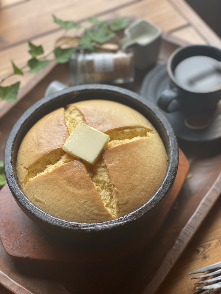 この石焼きの器で、シフォンケーキを焼けないかなぁとずーっと試行錯誤。何度も試食会を重ねて、やっとやっと去年これだ!というのが出来ました。