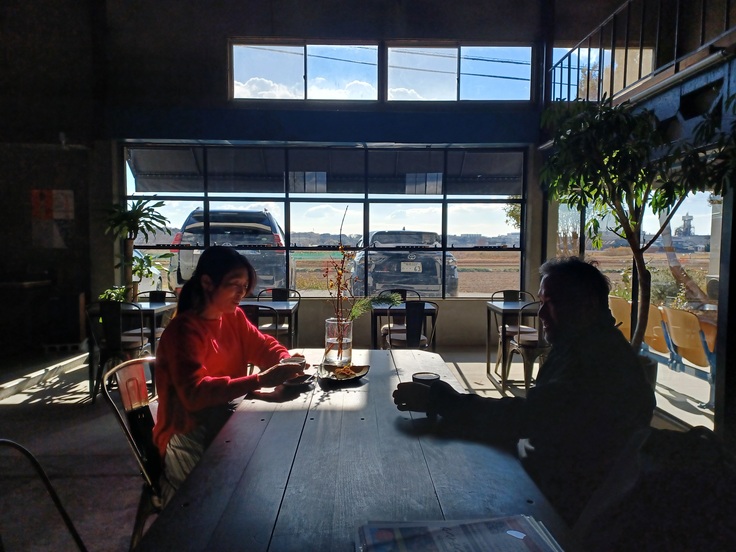 元工務店の建屋を譲り受けて改装。工場(こうば)の雰囲気をなるべく残しながら魅力的な空間にされたとのこと。オーナーさんとご挨拶し、3月20日に開催予定の刊行イベント(改めてご案内いたします!)の二次会などについていろいろお話しました。