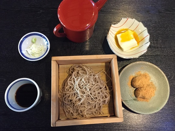 ①八町茶屋「ざるそば(赤ねこ餅付)」
