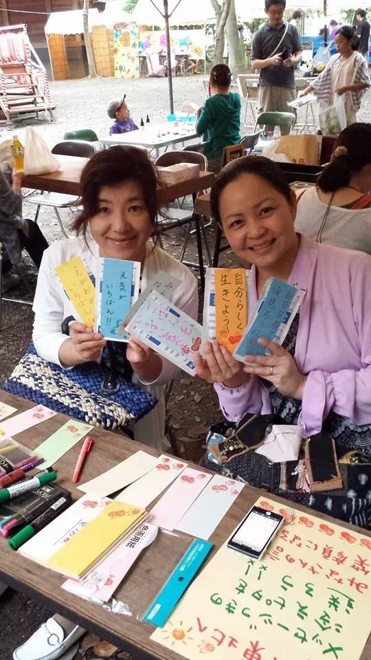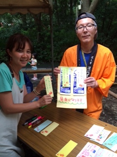 そして、先月、7月19日(土)~21日(月祝)の3日間開催いたしました東京都調布市の「深大寺鬼燈まつり」におきましてこのクラウドファンディングプロジェクトの実現に向けて、まず初日から深大寺鬼燈まつりに来場されていた方々に呼びかけて福島の子供たちに短冊状の色紙に応援メッセージを書いていただきました!