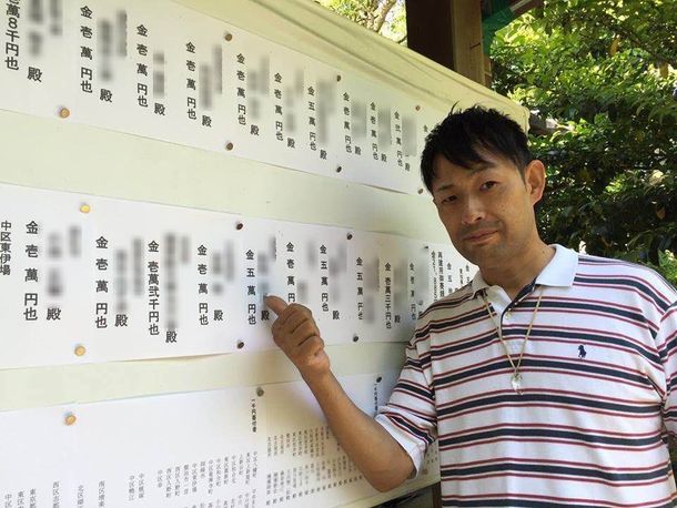 後ろの掲示板は、地元浜松の皆さまからお寄せいただいたご寄付の一覧。