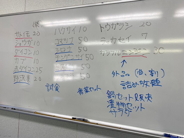 また実習では、堆肥づくりの他、研修生で11月12日の大仁農場「食・農・健康フェス」での社会人コース販売会(販売実習)にむけて打合せを行いました。販売方法を学ぶのももちろん大事ですが、自らが育てた野菜を消費者に届け、食べていただくまでが生産者の責任でもあります。そして消費者の声を直接お聞きできることが、次の生産力アップにつながることは間違いありません。みんなで協力して頑張りたいと思います。