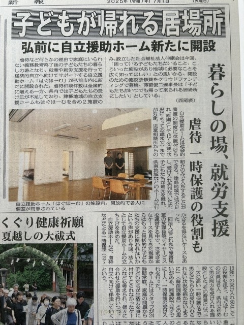 この間地元新聞の取材を受けたり、一時保護を受け入れたりと、自立援助ホームの事業を実感する日々が続いています。