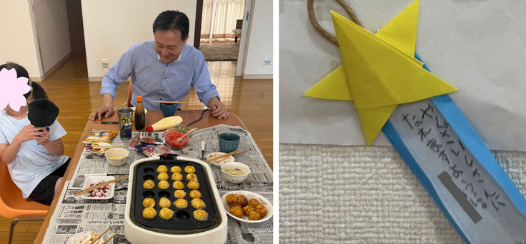 先日の七夕の日にホームに立ち寄ったところ、たこ焼きパーティーをしていました。