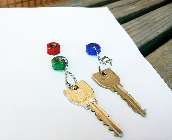 今回の自転車修理プロジェクトにご支援いただいた記念の証として、ナットで利用して作ったキーホルダーをお送りします。