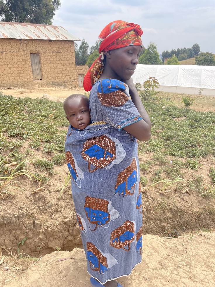 そのような中、昨年の夏に大学の研修でルワンダに1か月滞在した際に、街の中や畑で背中に赤ちゃんを胴体に巻き付けつけるような形で使用されているおんぶ紐を見かけ、日本で使用されている形とは、全く異なっていました。現地のお母さんたちが、軽々と歩いたり、畑仕事などをする姿が印象的でした。