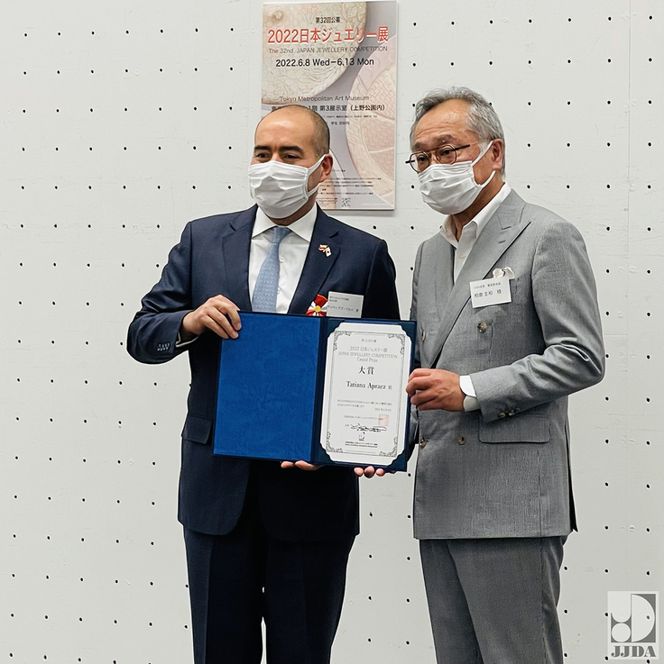 また、「2022 日本ジュエリー展」授賞式では、コロナ禍で来日が叶わなかった大賞受賞者 タティアナ・アプラエス氏に代わり、サンティアゴ・パルド駐日コロンビア大使が、ご出席くださいました。貴重な国際交流になりました。
