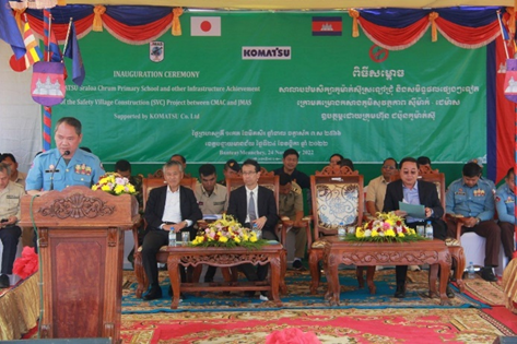 開校式典には、CMAC副長官、JMAS理事長、JMAS現地統括代表、コマツ代表取締役社長兼CEO、 バンテアイメンチェイ州副知事はじめ、多くの関係者、同校の職員や児童が参列し、コマツ・スロラウチュルム小学校の開校(新設)を祝福しました。