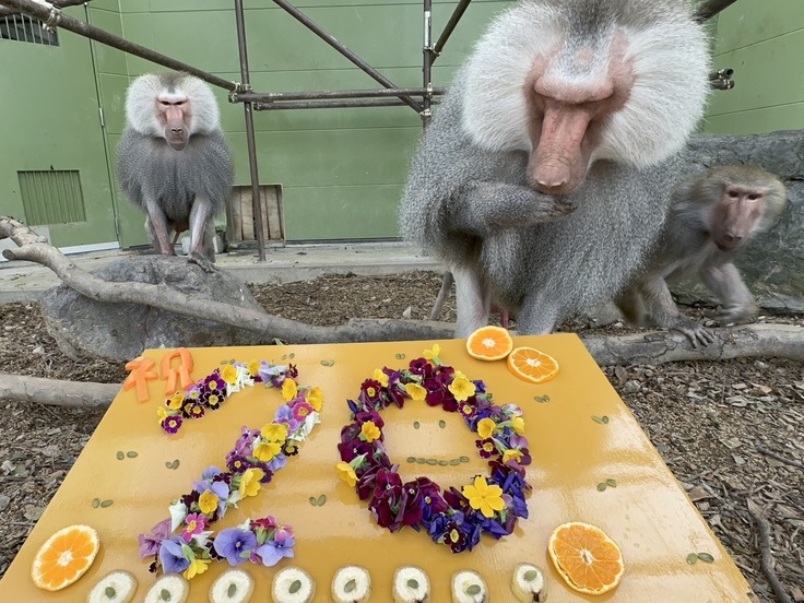 追伸:原野と森の家でくらすマントヒヒたちへ20%達成お祝いプレートをお届けしました♪