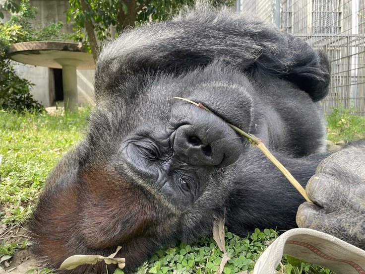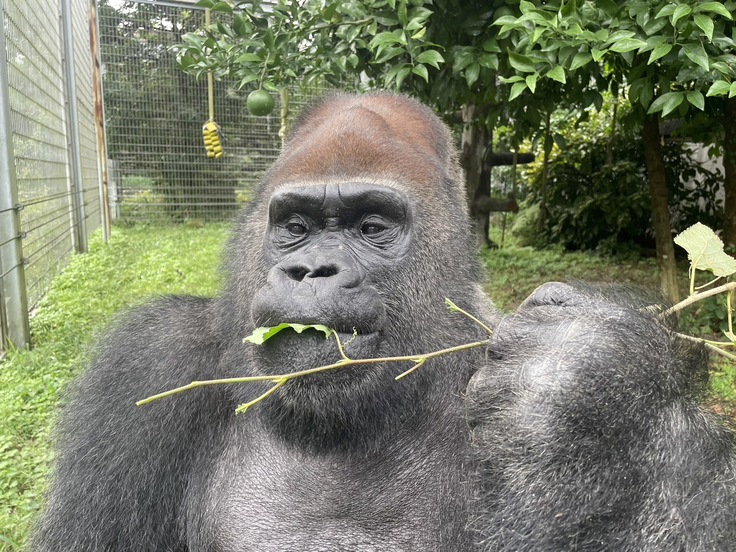 『現在ニシゴリラ国内オス最高齢のタロウが食べた枝』