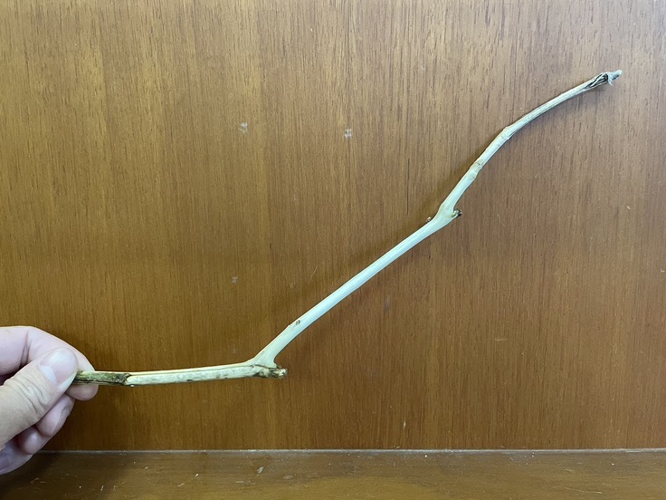 こちらはモンキーセンターでくらしているニシゴリラのタロウさんが葉っぱや樹皮を食べて残していった枝そのものになります。