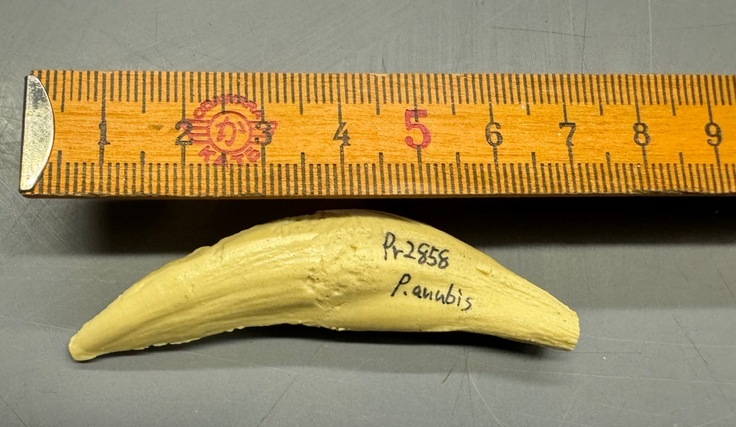 こちらはモンキーセンターで飼育されていたアヌビスヒヒの犬歯のレプリカ【歯プリカ】をキーホルダーにしたものになります。