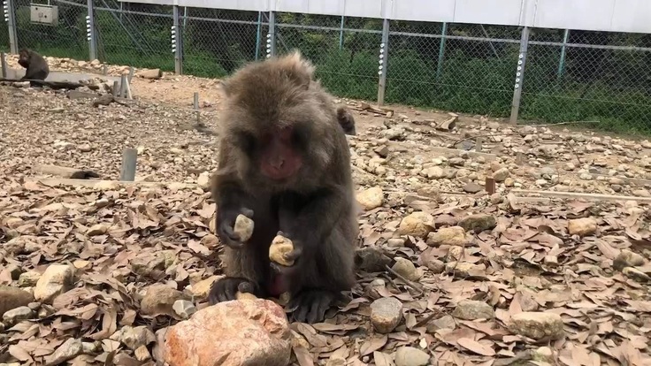 私はモンキーバレイのヤクシマザルを担当しております。日々、ギフトの「ヤクシマザルがカチカチした石」を集めております。多くの方に楽しんでいただけるよういろいろな個体から石を集めるようにしています。ぜひお楽しみに!!