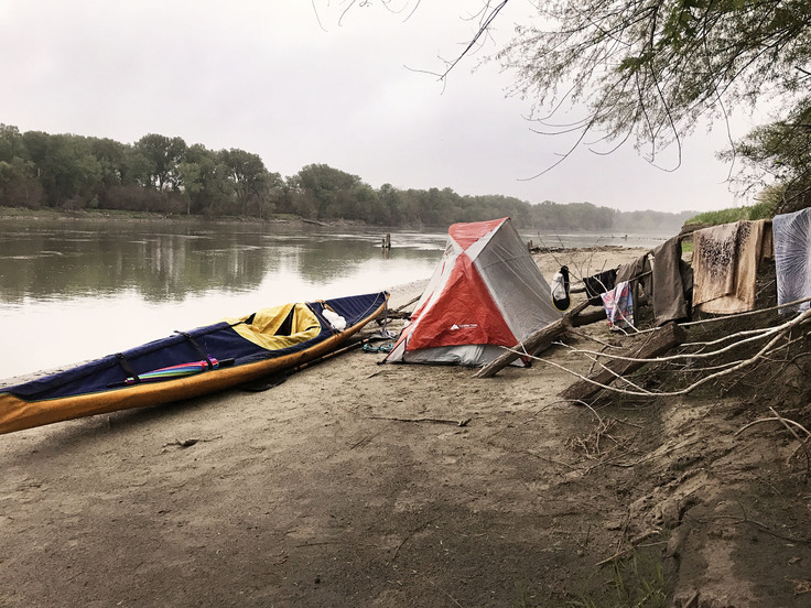 ※去年のミシシッピ川下りの写真。テントはホームセンターで約3000円のものを使用しましたが、三日目に強風に煽られポールが折れるアクシデントが発生。