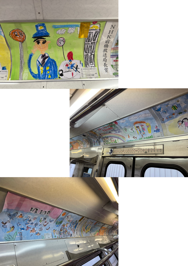 子どもたちが描いた「電車のある生活」の風景や夢が、上毛電気鉄道の車両内に展示され、まるで“動く美術館”のように沿線を走ります✨