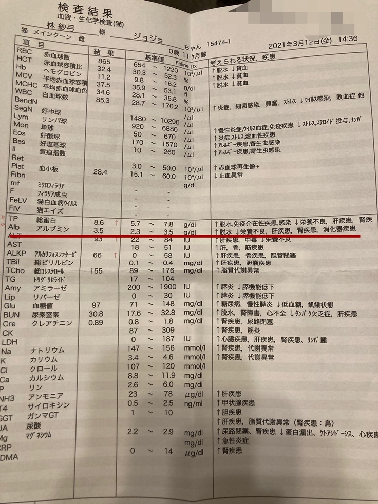 総蛋白がいい感じに下がってきているそうでこれまた安心しました!